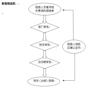 ⑺ 财务负责审核发票与凭证,部门经理审批,总经理签字确认后,由财务支出费用。 报销费用后,须由本人签字确认。